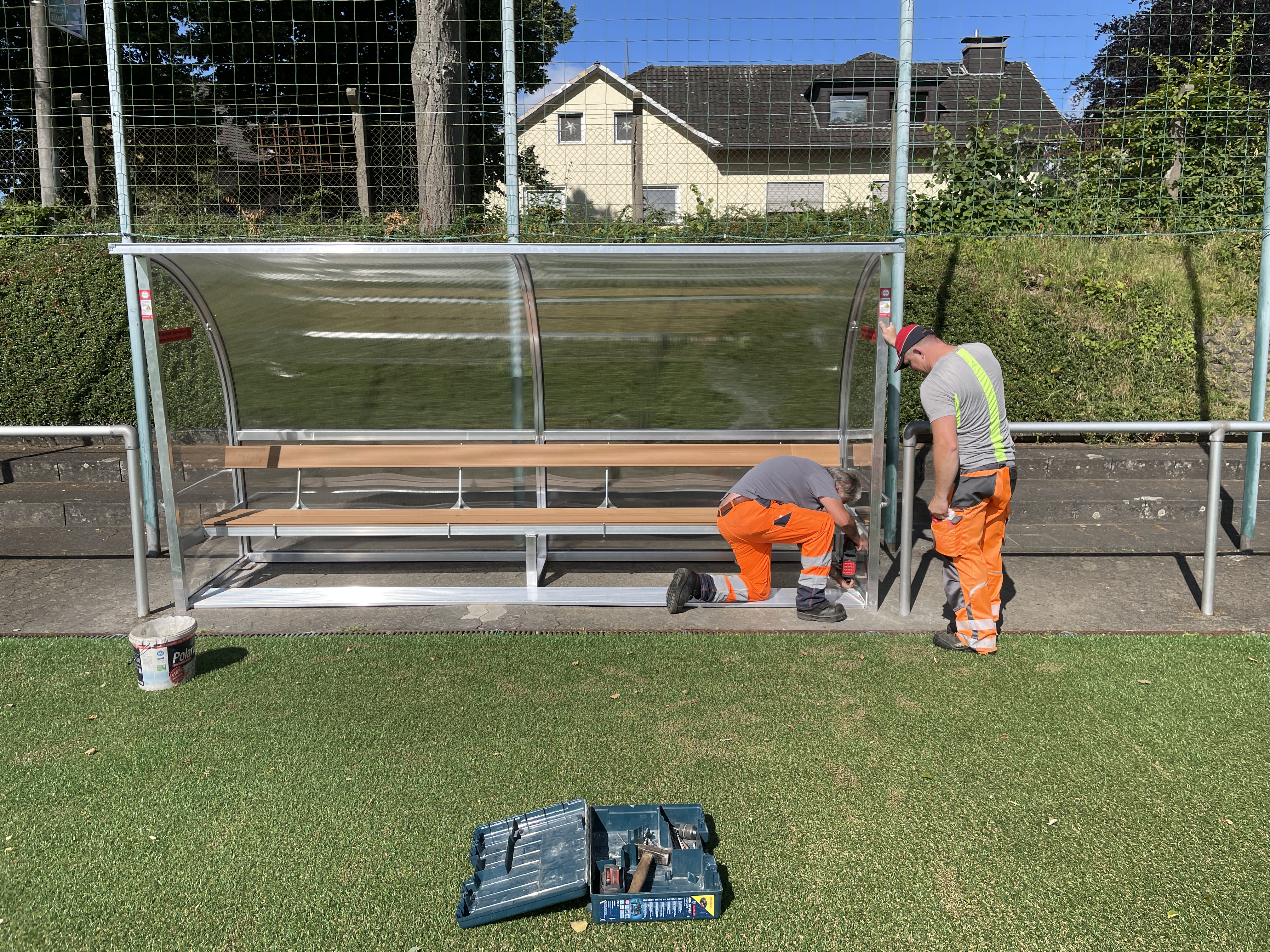 Sportplatz Eitorf - neue Spielerunterstände (Artikel+Bild):